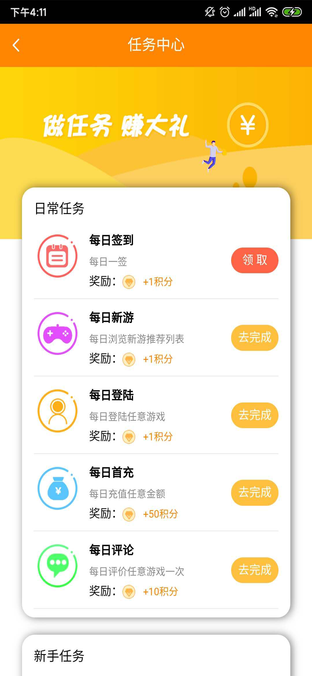 新增功能:簽到功能、游客登錄、收藏游戲、分享游戲