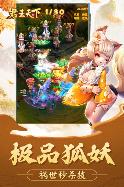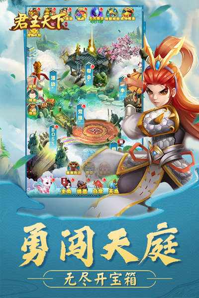 《君王天下》是一款Q萌風(fēng)格的經(jīng)典回合制修仙游戲,題材取自九州神話故事,細(xì)膩的畫面清新亮麗,讓你擁有特效絢麗的技能和造型多樣的裝備,與仙魔神妖展開激烈對(duì)戰(zhàn),穿梭在極美超仙的神話世界中!輕松升級(jí),叱咤九州,暢享萬(wàn)人膜拜的超快感!帶萌寵、養(yǎng)女神、配天仙、結(jié)道侶等多種玩法助你降妖封神。離線掛機(jī)翻倍收益,開局不只一條鯤,上線即送元寶銀兩VIP8。平民玩家也能玩得爽!來(lái)吧,共同譜寫屬于我們自己的夢(mèng)幻神話傳奇!